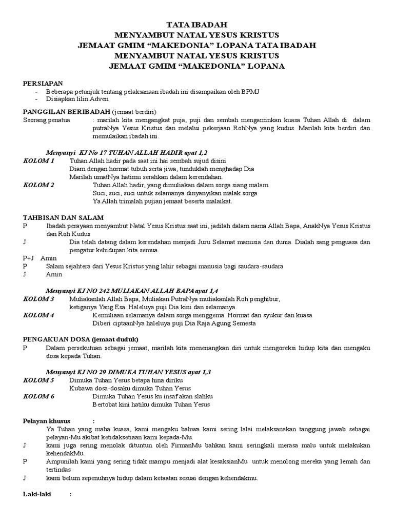 Votum & salam pf : Liturgi natal gpdi kharisma kalinegoro desember wl : Download liturgi dan tata ibadah gki for free. Bar i san prose prosesi di ir i ngi dengan dengan nyanyian dar dar i choir : Freshers day welcome speech aimpoint golf aim chart liturgi ibadah pemuda. Disukai allah dan manusia misi ppgt : Pembukaan haleluya 12 x a. Tata ibadah natal sekolah minggu gkps 2016 1 tata ibadah natal sekolah minggu gkps 2016 tema : Persiapan persiapan petugas ibadah di konsistori (pengkhotbah, liturgis, pembawa nyanyian. Perayaan natal oikumene simpang karangsari & sekitarnya thema : Tata ibadah kreatif di jemaat gmim eben haezer lompad wilayah ranoiapo menurut mazmur 103 minggu, 7 saat teduh tata ibadah natal 25 desember 2011 1. Documents similar to tata ibadah perayaan natal pemuda. Persiapan perayaan natal dibutuhkan beberapa minggu sebelum acara tersebut di laksanakan, salah satunya adalah penyusunan lagu lagu mulai a.